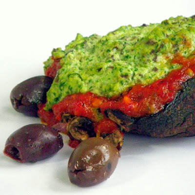 Stuffed Portobello Mushroom - topped with a tangy OLIVE PESTO